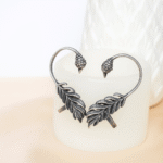 Make a bold fashion statement with these exquisitely crafted feather-inspired ear cuff earrings from RAJVANI JEWELLERY. The oxidised silver finish gives these earrings a vintage charm that perfectly complements their intricate feather design. Each earring features a delicate leaf pattern that cascades downward, creating a dramatic yet elegant look. The boho-style aesthetic makes these pieces versatile enough to pair with both casual and formal attire. The ear cuffs are thoughtfully designed with a comfortable fit that stays secure throughout wear. These statement pieces are perfect for those who appreciate unique, artisanal jewellery with a contemporary twist. The contrast between the detailed metalwork and the oxidised finish adds depth and character to these stunning accessories. Whether you’re dressing up for a special occasion or adding flair to your everyday style, these ear cuffs are sure to draw admiring glances.